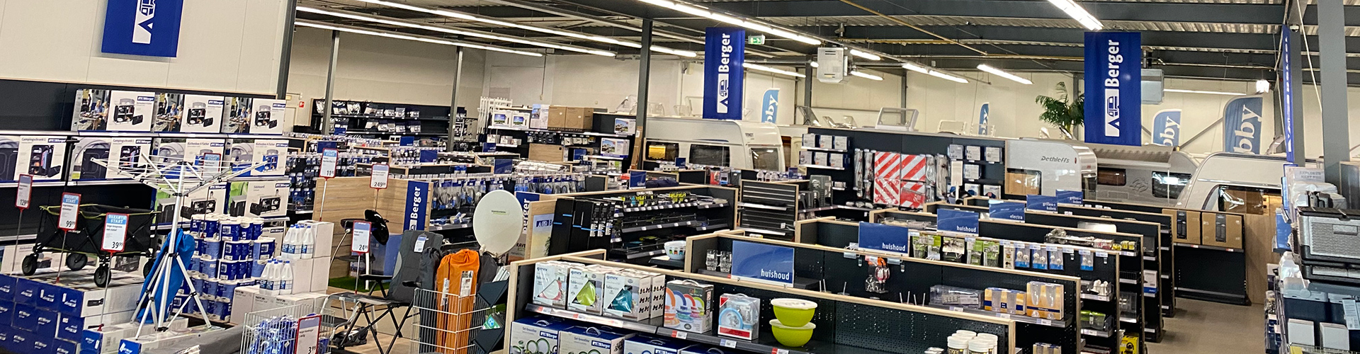 In onze ruime kampeerwinkel van maar liefst 600 vierkante meter, in samenwerking met Fritz Berger, vindt u alles op het gebied van kamperen en vrije tijd. Van tafels en stoelen tot borden en bestek, alsook een uitgebreide selectie technische accessoires zoals tv’s, schotels, dakluiken, kitten en nog veel meer. Bij Klein Caravans is uw kampeerbeleving compleet.
