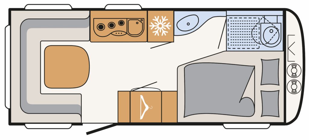 Let op! De foto`s zijn bedoeld om een idee te geven van het interieur en de sfeer van de caravan. De foto`s kunnen afwijken van de indeling en stoffering.