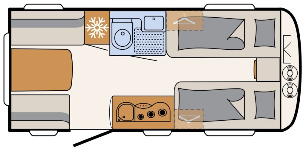 Let op! De foto`s zijn bedoeld om een idee te geven van het interieur en de sfeer van de caravan. De foto`s kunnen afwijken van de indeling en stoffering.