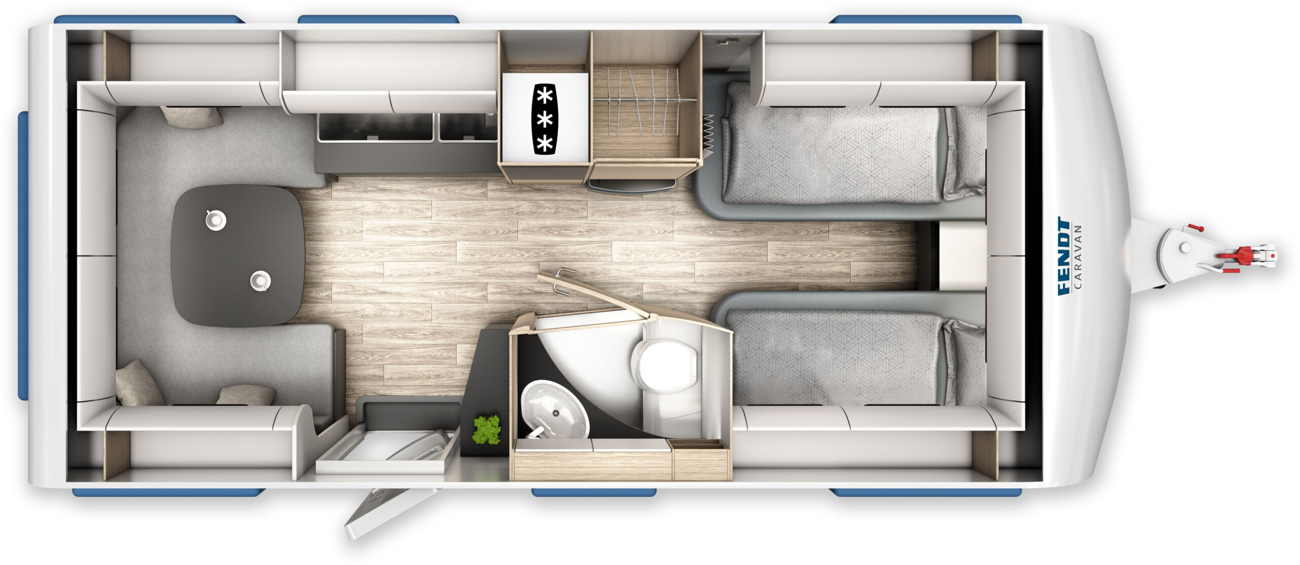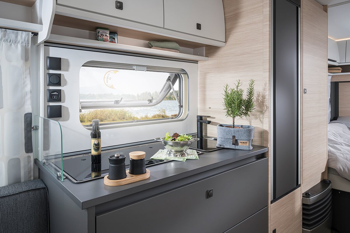 De Apero maakt sinds drie jaar deel uit van de Fendt Caravan-familie en heeft zich fantastisch op de markt gevestigd. In alle indelingen kan worden gekozen tussen de nieuwe stofvariant “Ibiza” en de reeds bekende stof ‘Pino’, die perfect harmoniëren met het moderne meubeldecor “Norfolk”. Gezellige zitgroepen, hoogwaardige slaapplaatsen, goed uitgeruste keukens en aantrekkelijke badkamers, evenals ruime kasten, vakken en planken zijn standaard bij Apero.