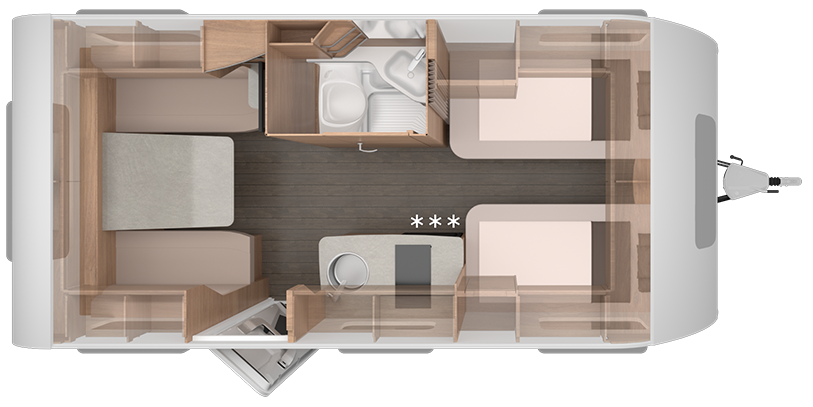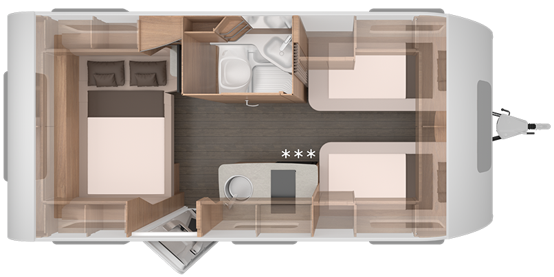 Let op! De foto`s zijn bedoeld om een idee te geven van het interieur en de sfeer van de caravan. De foto`s kunnen afwijken van de indeling en stoffering.