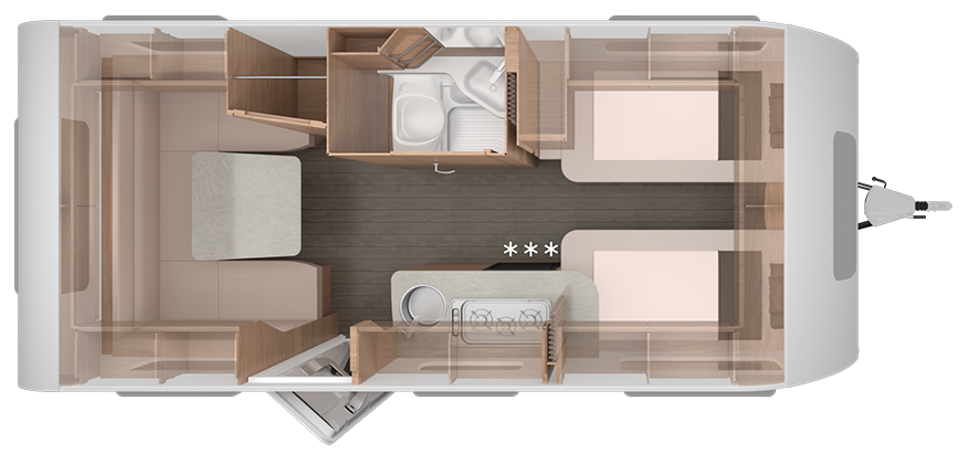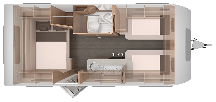 Let op! De foto`s zijn bedoeld om een idee te geven van het interieur en de sfeer van de caravan. De foto`s kunnen afwijken van de indeling en stoffering.
